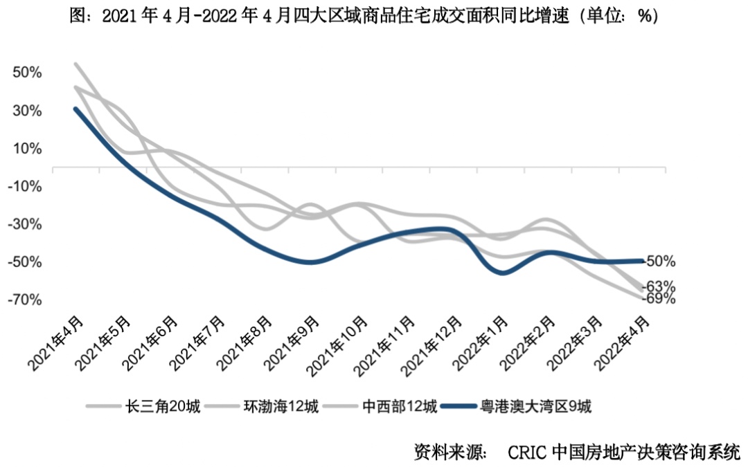 2022年“奥密克戎” 新冠肺炎疫情反复中长三角、环渤海(包含京津冀)、中西部等地区均遭受严重疫情,而粤港澳大湾区至5月初仅广州1城受到短期静态管控,宏观经济与房地产市场受疫情影响相对较小。