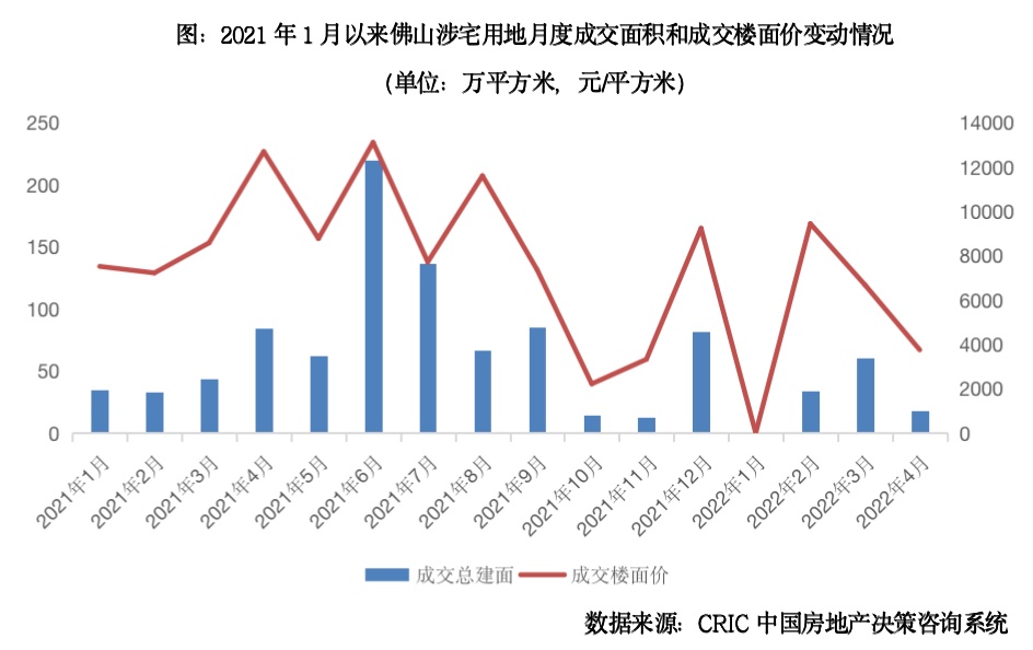 而从土地市场来看则更显低迷,据cric监测数据,1-4月佛山涉宅用地挂牌14宗,仅出让7宗,均为底价成交,另外3宗因故撤牌,4宗延期出让或仍在交易状态,对比去年同期佛山15宗涉宅用地成交,今年成交规模明显缩减,从成交总建面来看,前4月同比跌幅高达43%,开发商在销售淡市下普遍缺乏拿地意愿,成交楼面价也呈现波动下行走势。