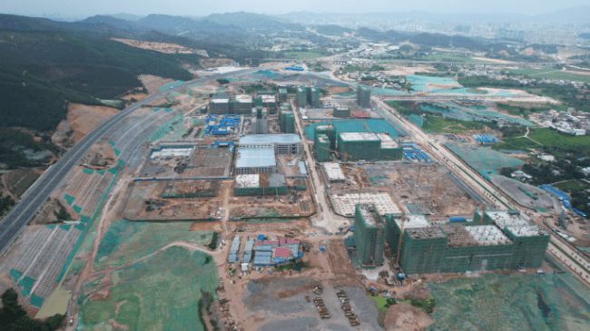 在毗邻深圳和东莞的惠州市惠阳区,从叶挺大道转入将军东路行驶不久,便来到广东省重点项目惠州湾东智谷项目工地。现场有6栋大楼在建,本月底起将陆续封顶,预计明年6月投产。